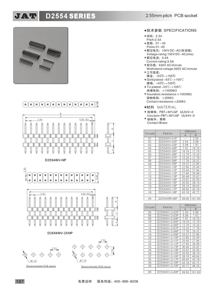 • PIN Header 2.54排針 D2554