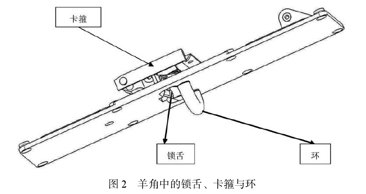 對接故障發生的頻率雖然低,但一旦發(fā)生就(jiù)很難排除,隻能(néng)拆解更換高壓連(lián)接器的羊角,以重新驗證(zhèng)。高壓連接器對接(jiē)故障直接表現為:2個高壓連接器分開時羊角上的(de)鎖舌沒有打開,導致下次閉合(hé)時羊角上的環無法插人(rén)鎖中,發生(shēng)故障(zhàng)。目前,解決故障的方法為:將高壓連接器的羊角拆解,對照圖紙檢查每個部件找出問題部件,更(gèng)換後重新組裝。多(duō)次拆解總結找出了發生變形的部件是羊角中的卡箍,但由於卡箍與羊角中的其他零件組成了一(yī)個(gè)複雜的四連軸結構,現場無法進行定量、定性分析。羊角中的鎖(suǒ)舌、卡箍與環如圖2所示